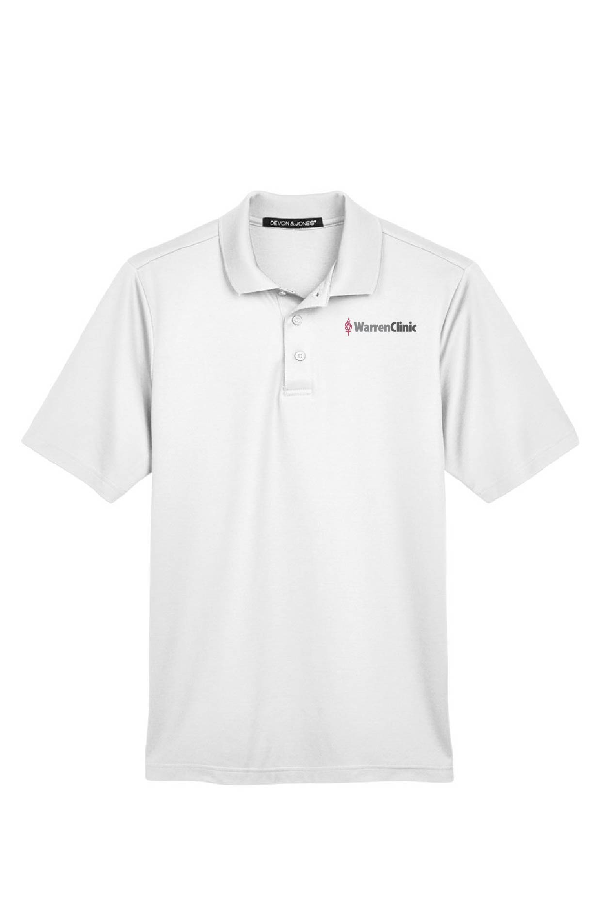 5 oz./yd²./ 172 gsm (US), 8.4 oz/Lyd (CA), 100% polyester face plaited to 60/40 polyester/cotton back (total overall garment 61/39 polyester/cotton) Proprietary dual-sided mesh pique knit constructed of fine denier wicking polyester on the outside and soft-as-cotton wicking blend on the inside Moisture-management performance UPF 15-39 protection Matching flat-knit collar Luxury, comfort and performance in one Three-button placket Dyed-to-match buttons