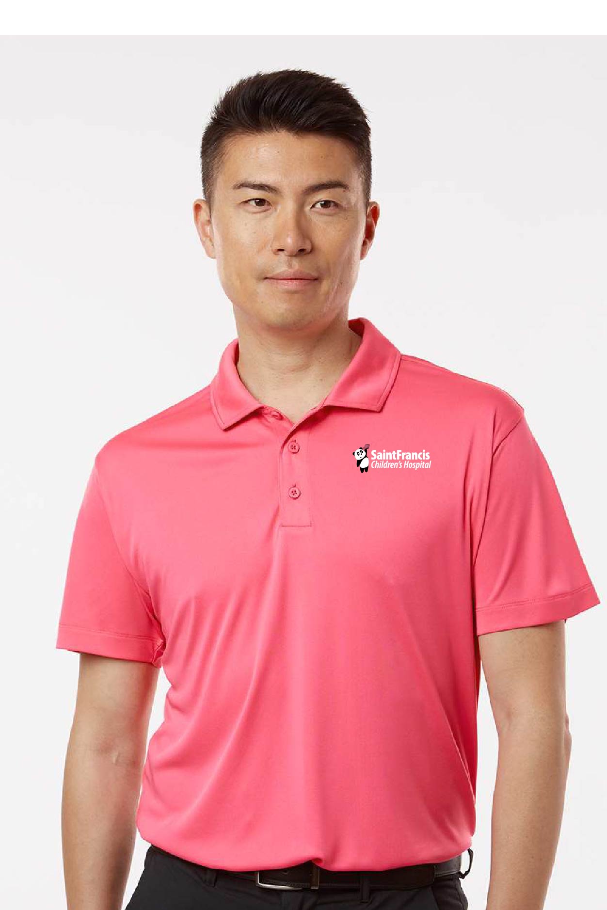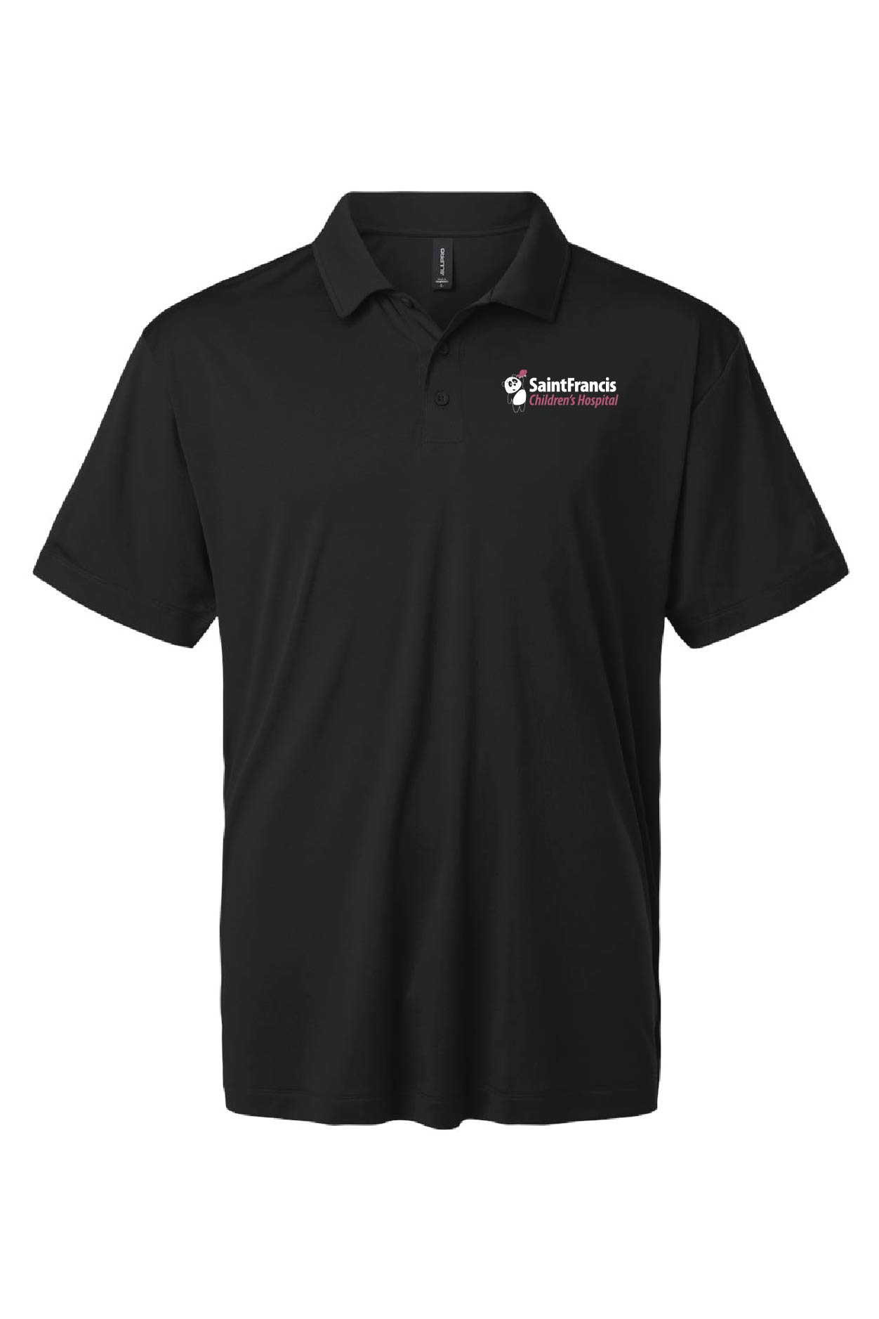 4 oz./yd² (US), 6.7 oz./L yd (CA), 100% polyester interlock jersey with Pro-Lock technology Made with cationic disperse dye for a premium fade-resistant printing surface Moisture-management properties UPF 50 protection Snag-resistant Standard fit Self-fabric collar Three-button placket with dyed-to-match buttons Rolled forward shoulder Tear away label for comfort and relabeling