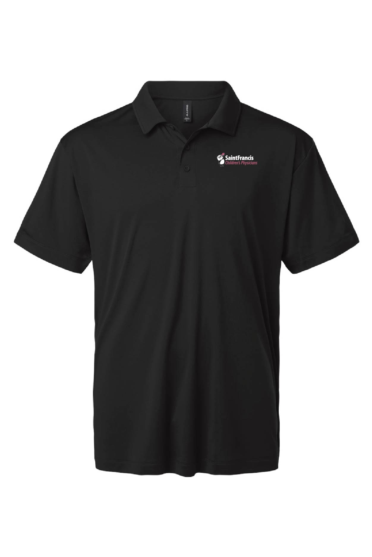 4 oz./yd² (US), 6.7 oz./L yd (CA), 100% polyester interlock jersey with Pro-Lock technology Made with cationic disperse dye for a premium fade-resistant printing surface Moisture-management properties UPF 50 protection Snag-resistant Standard fit Self-fabric collar Three-button placket with dyed-to-match buttons Rolled forward shoulder Tear away label for comfort and relabeling
