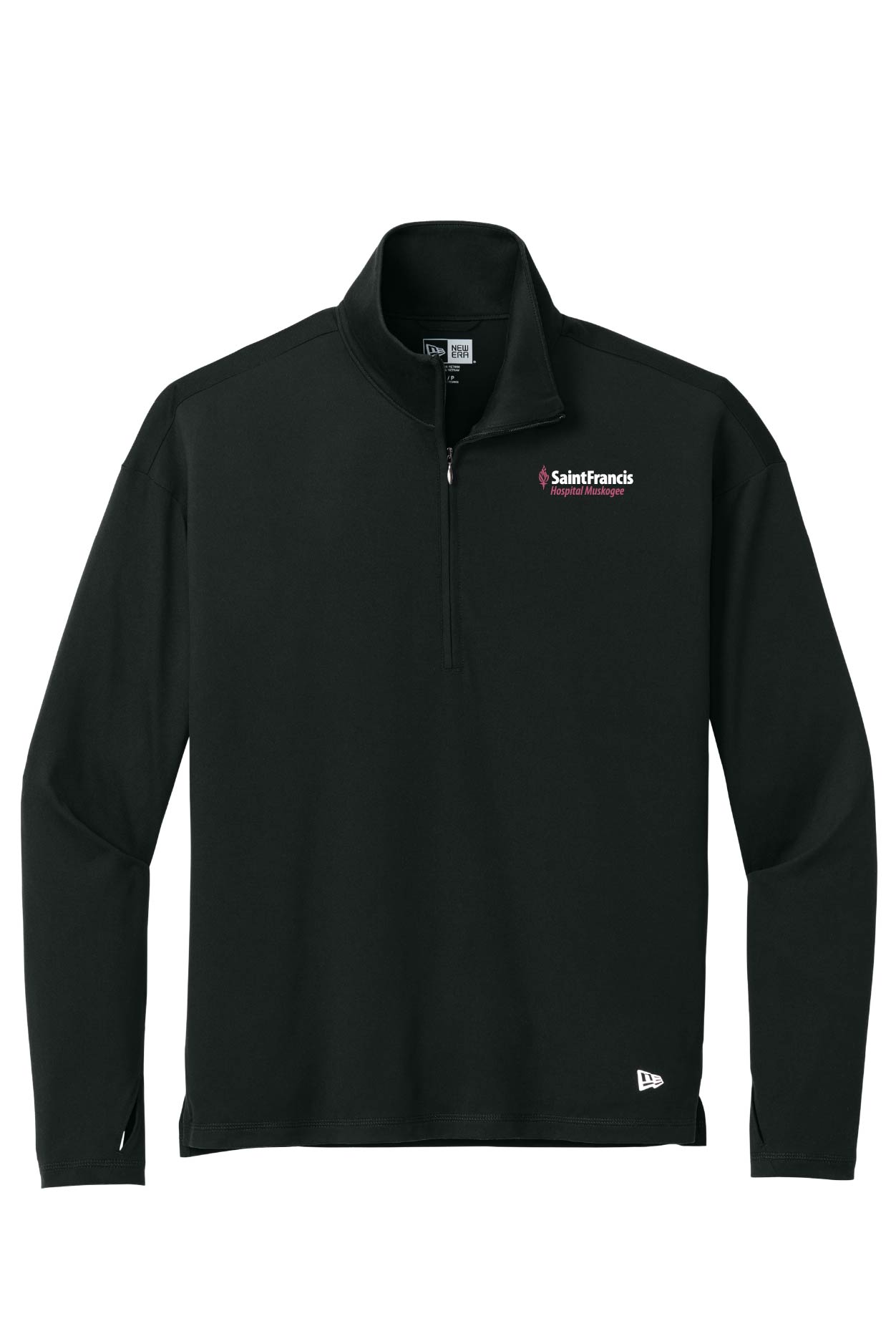 With moisture wicking and stretch, this 1/2-zip gives you powerful performance. 4.7-ounce, 91/9 polyester/spandex Inner neck locker loop Heat transfer label for tag-free comfort Raglan sleeves Molded zipper Reflective silver heat transfer New Era flag logo on left hem