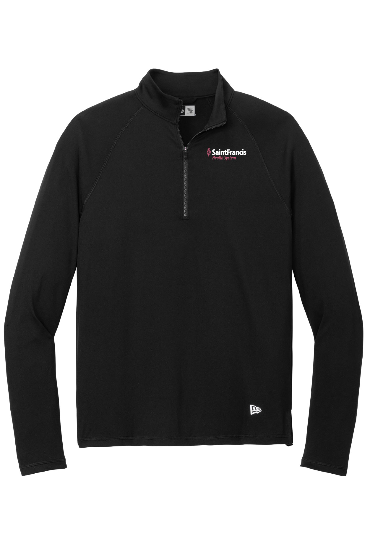 With moisture wicking and stretch, this 1/2-zip gives you powerful performance. 4.7-ounce, 91/9 polyester/spandex Inner neck locker loop Heat transfer label for tag-free comfort Raglan sleeves Molded zipper Reflective silver heat transfer New Era flag logo on left hem