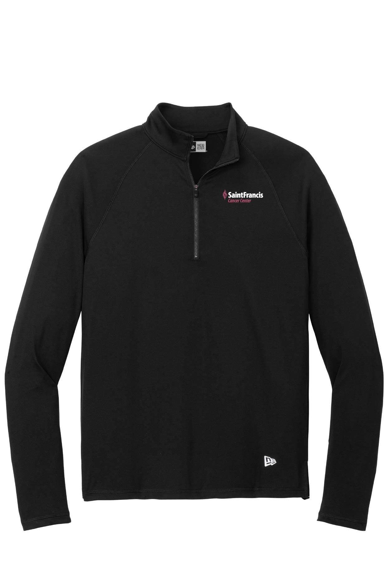 With moisture wicking and stretch, this 1/2-zip empowers your performance. 4.7-ounce, 91/9 polyester/spandex Inner neck locker loop Heat transfer label for tag-free comfort Invisible kissing welt zipper with gunmetal pull Thumbholes Reflective silver heat transfer New Era flag logo on left hem Slight drop tail hem