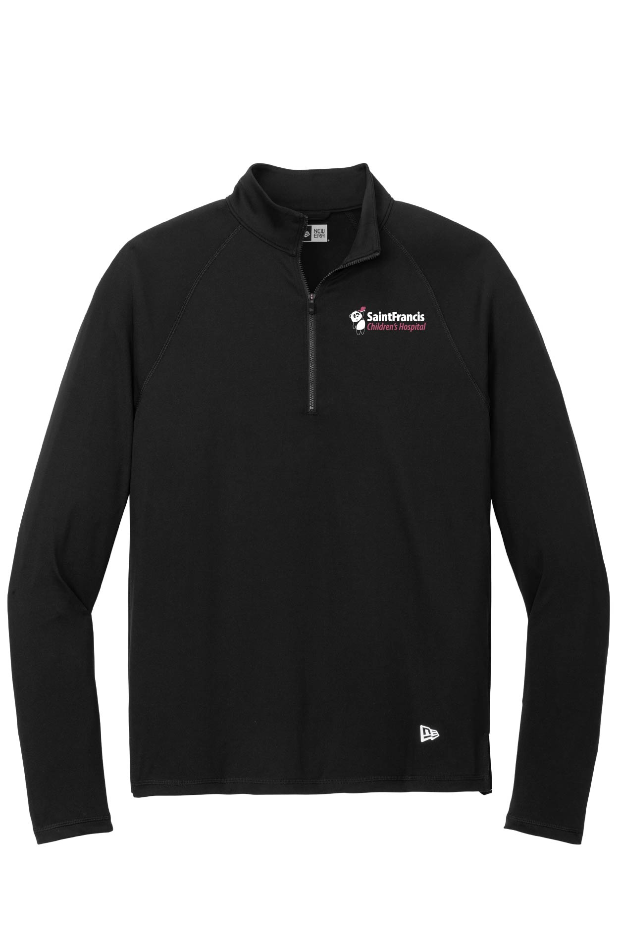 With moisture wicking and stretch, this 1/2-zip empowers your performance. 4.7-ounce, 91/9 polyester/spandex Inner neck locker loop Heat transfer label for tag-free comfort Invisible kissing welt zipper with gunmetal pull Thumbholes Reflective silver heat transfer New Era flag logo on left hem Slight drop tail hem