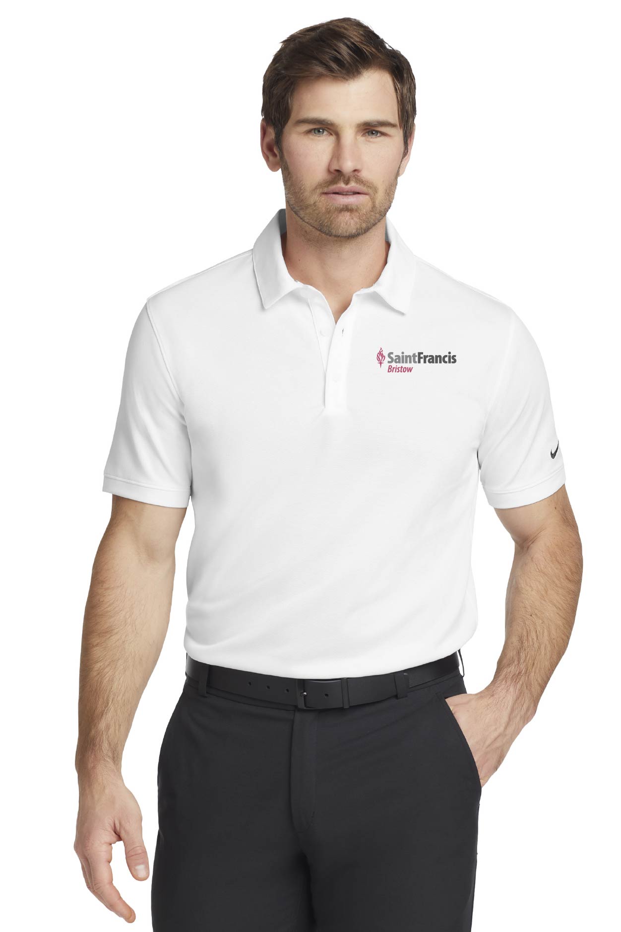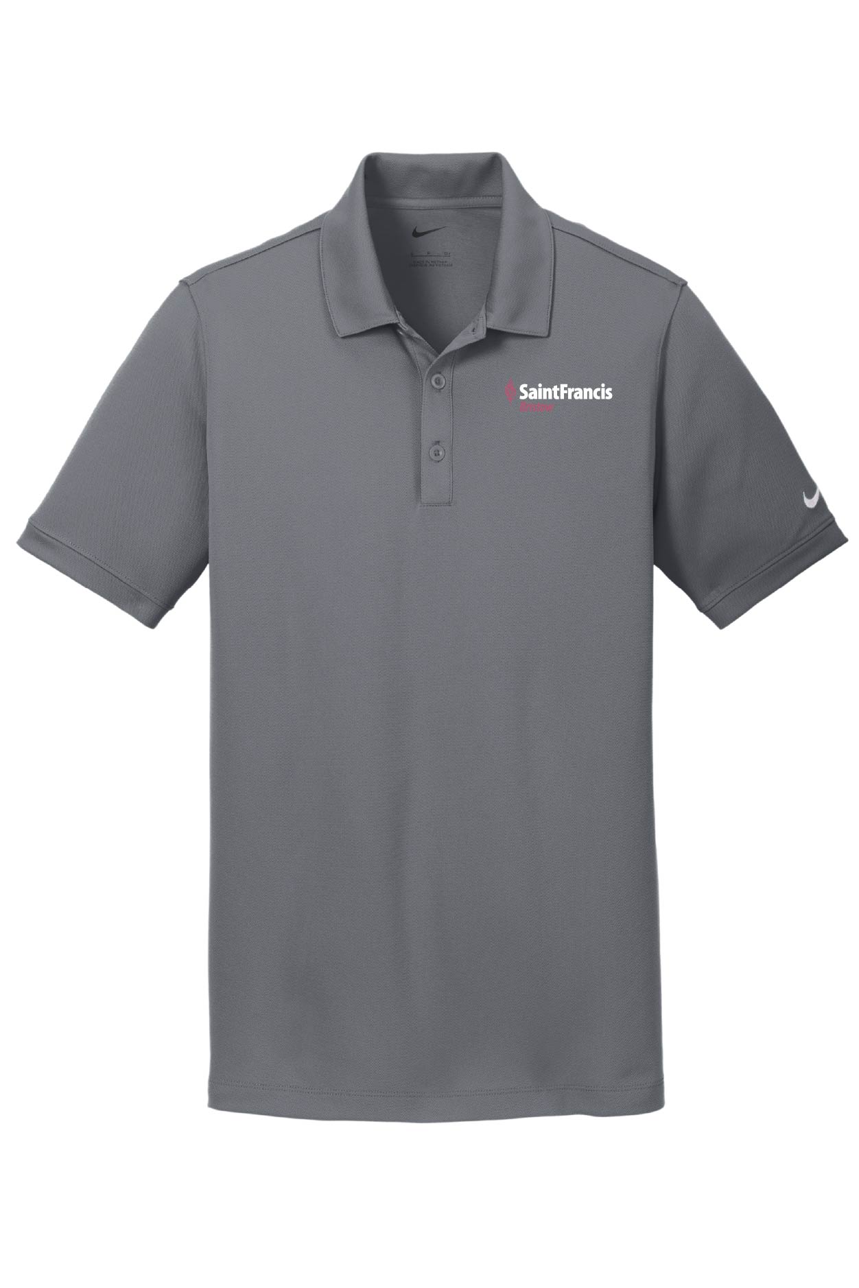 Dri-FIT moisture management technology achieves maximum comfort, while an iconic look gives this pique polo modern style. Design details include a self-fabric collar, dyed-to-match buttons and open hem sleeves. Three-button placket. The contrast Swoosh design trademark is embroidered on the left sleeve.Made of 4.7-ounce, 100% polyester pique Dri-FIT fabric. Modern fit is slightly tailored through the chest, arms and waist.