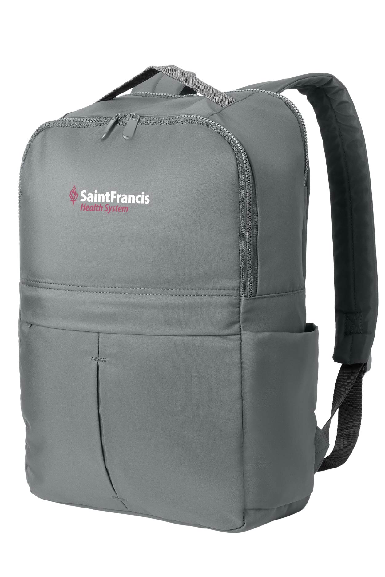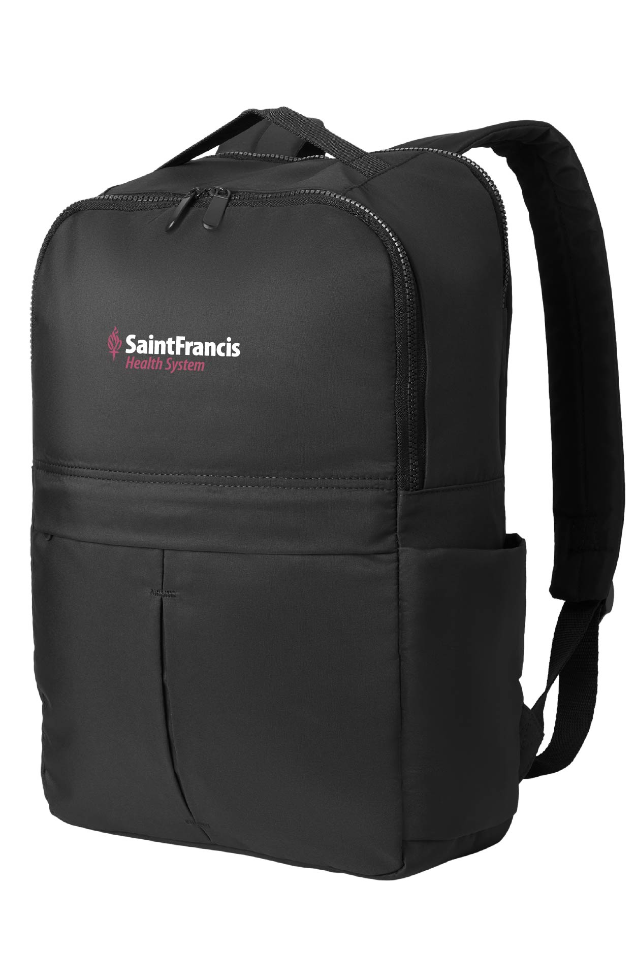Smooth matte polyester with knitted cloth Zippered main compartment Dyed-to-match metal zipper pulls Pleated front zipper pocket Dyed-to-match molded zippers Adjustable shoulder straps Side pocket Web carry handle Laptop sleeve dimensions: 11""h x 17.7""w x 0.98""d; fits most 16"" laptops Dimensions: 17.7""h x 11.4""w x 5.5""d