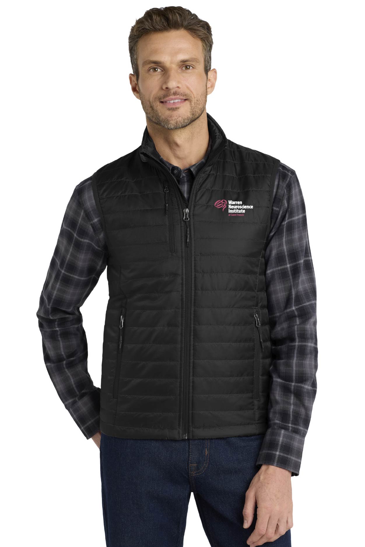 Staying warm while on the go has never been easier with our Packable Puffy Vests. Thanks to a water-repellent fabric coating and finish, you’ll remain comfortable no matter where your day takes you. 100% polyester shell and lining with 2.4 oz. polyfill insulation. Dyed-to-match drawstring carrying pouch included.