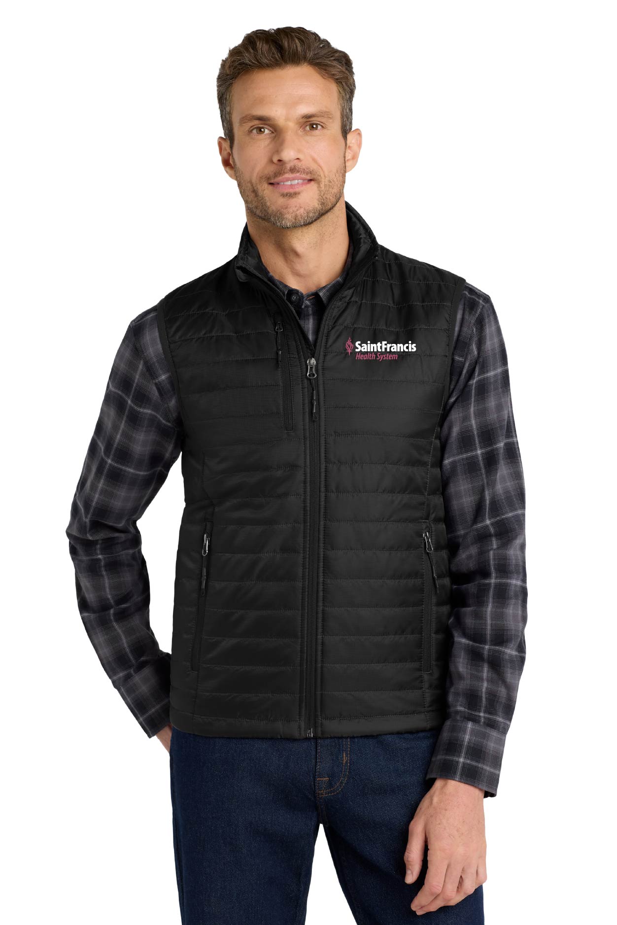 Staying warm while on the go has never been easier with our Packable Puffy Vests. Thanks to a water-repellent fabric coating and finish, you’ll remain comfortable no matter where your day takes you. 100% polyester shell and lining with 2.4 oz. polyfill insulation. Dyed-to-match drawstring carrying pouch included.