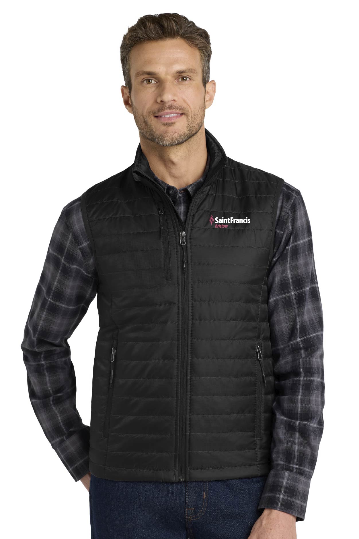 Staying warm while on the go has never been easier with our Packable Puffy Vests. Thanks to a water-repellent fabric coating and finish, you’ll remain comfortable no matter where your day takes you. 100% polyester shell and lining with 2.4 oz. polyfill insulation. Dyed-to-match drawstring carrying pouch included.