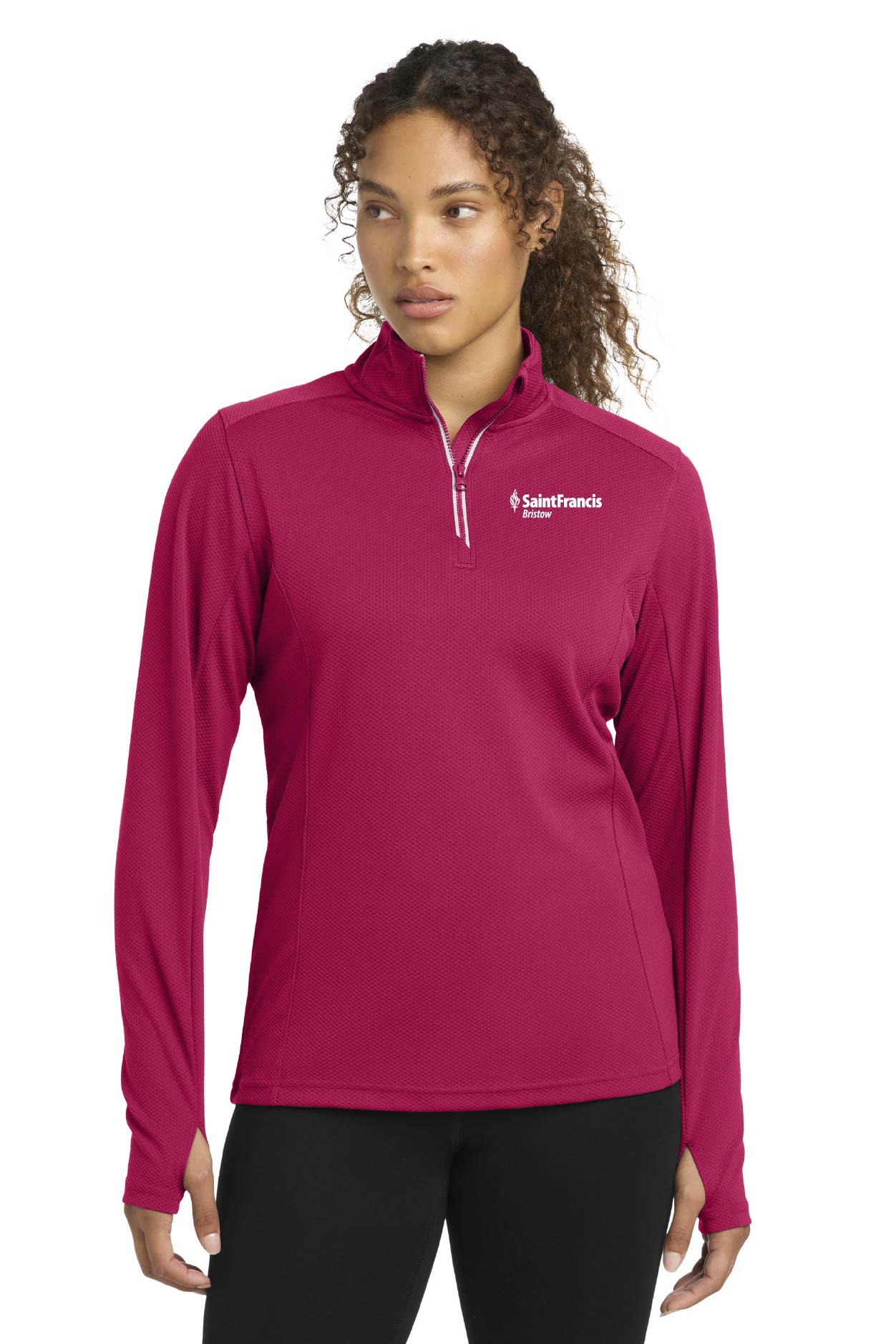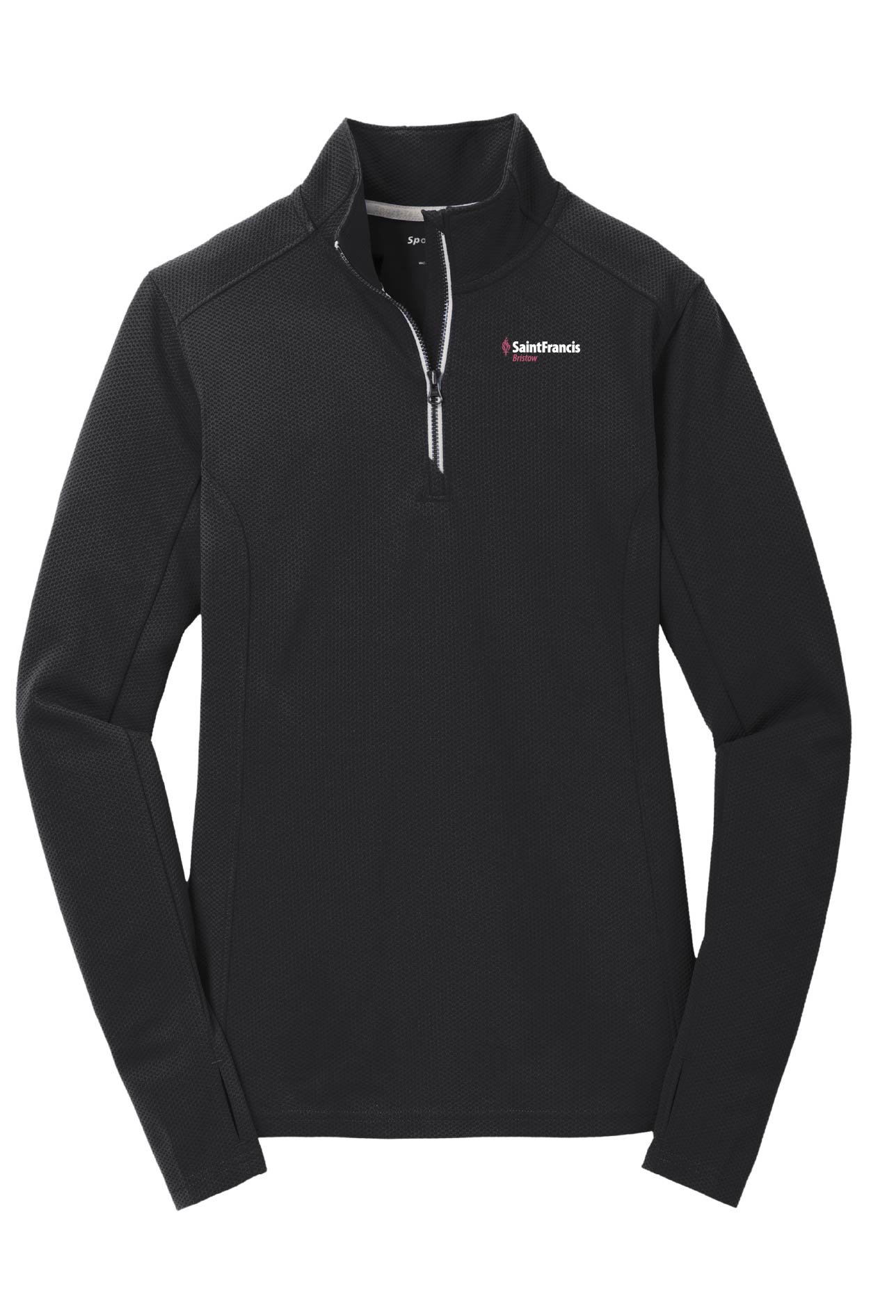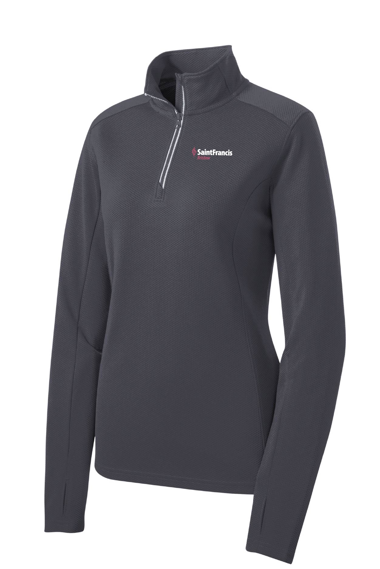 This mid-weight pullover has an unbeatable textured look with contrast zipper taping. Plus, it performs by wicking moisture. 100% polyester Cadet collar Tag-free label Taped neck Dyed-to-match Vislon zipper and pull Silver zipper tape Angled chin guard for additional comfort Set-in sleeves Thumbholes to keep hands warm Front and back princess seams Open cuffs and slight drop tail hem