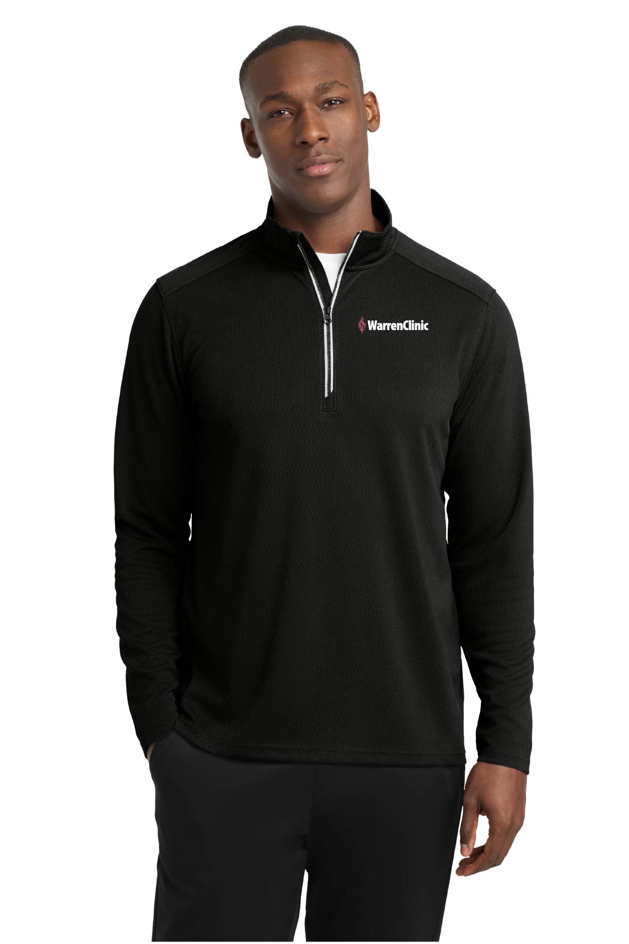 This mid-weight pullover has an unbeatable textured look with contrast zipper taping. Plus, it performs by wicking moisture. 100% polyester Cadet collar Tag-free label Taped neck Dyed-to-match Vislon zipper and pull Silver zipper tape Angled chin guard for additional comfort Set-in sleeves Thumbholes to keep hands warm Front and back princess seams Open cuffs and slight drop tail hem