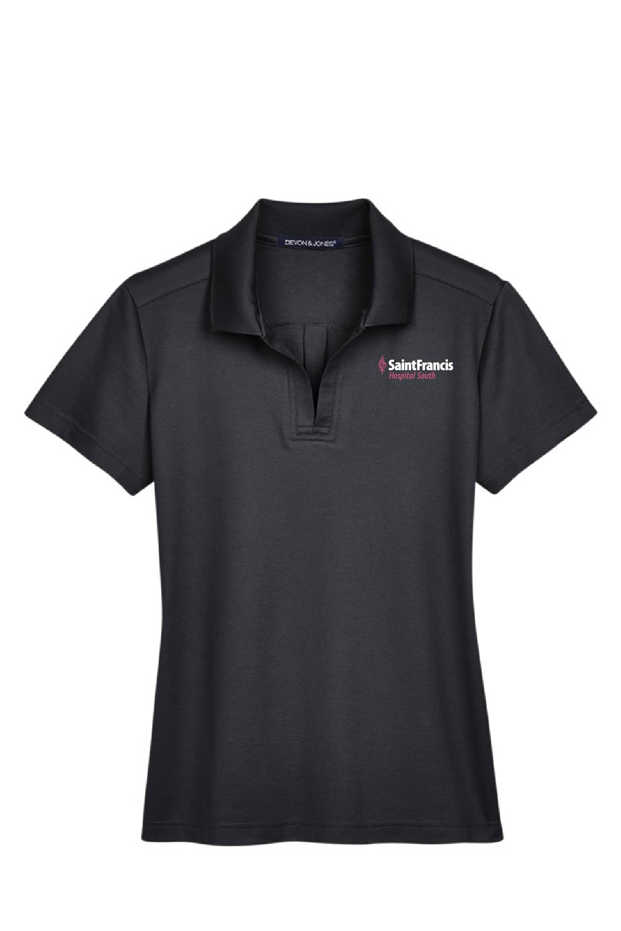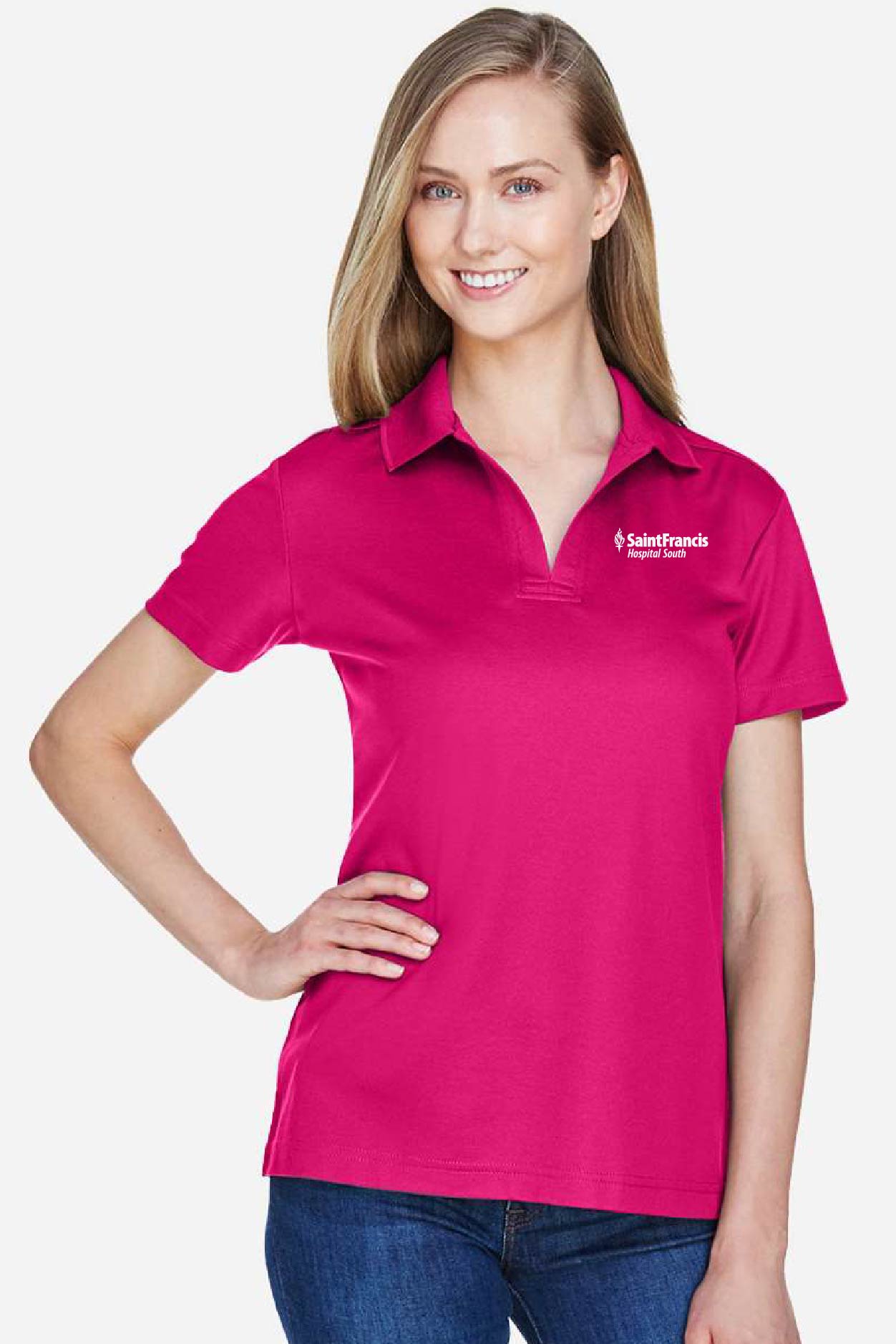 5 oz./yd² / 172 gsm (US), 8.4 oz/Lyd (CA), 100% polyester face plaited to 60/40 polyester/cotton back (total overall garment 61/39 polyester/cotton) Proprietary dual-sided mesh pique knit constructed of fine denier wicking polyester on the outside and soft-as-cotton wicking blend on the inside Moisture-management performance Luxury, comfort and performance in one Active fit UPF 15-39 protection Matching flat-knit collar Stylized open placket Curved back yoke with center pleat Side vents
